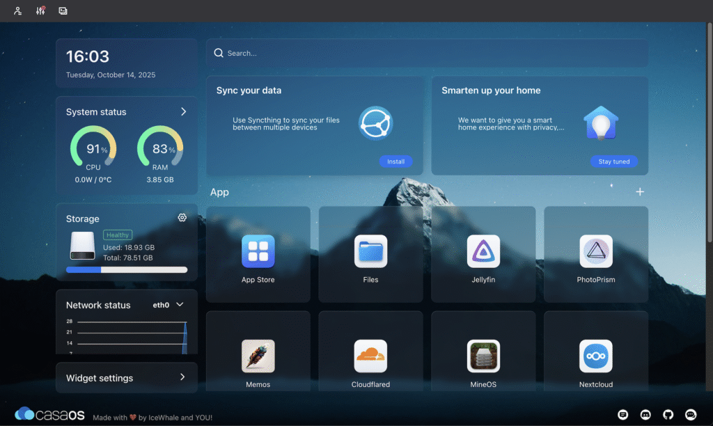 CasaOS es una plataforma diseñada para quienes quieren tener su propio servidor o nube personal en casa sin complicarse con configuraciones complejas ni comandos interminables. A diferencia de otras soluciones de virtualización o administración más técnicas, CasaOS busca que todo sea sencillo desde el primer momento. Se instala sobre un sistema Linux —ya sea en un mini PC, una Raspberry Pi o un servidor doméstico— y, una vez en marcha, se controla completamente desde el navegador, sin necesidad de utilizar la consola.