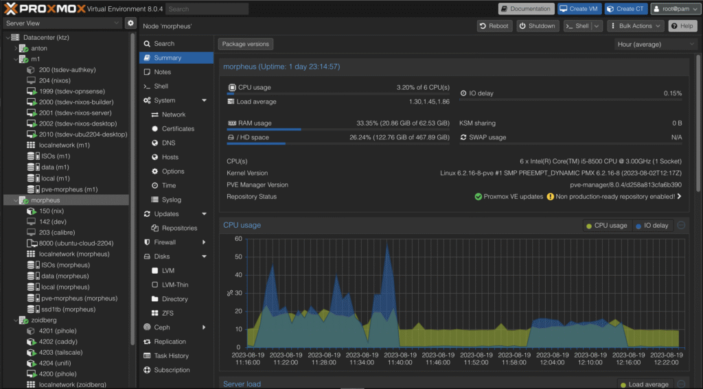 Aun así, Proxmox es una herramienta excelente para aprender administración de sistemas y redes. Permite experimentar con conceptos avanzados como redes virtuales, almacenamiento compartido, snapshots y backups de VMs o incluso alta disponibilidad.